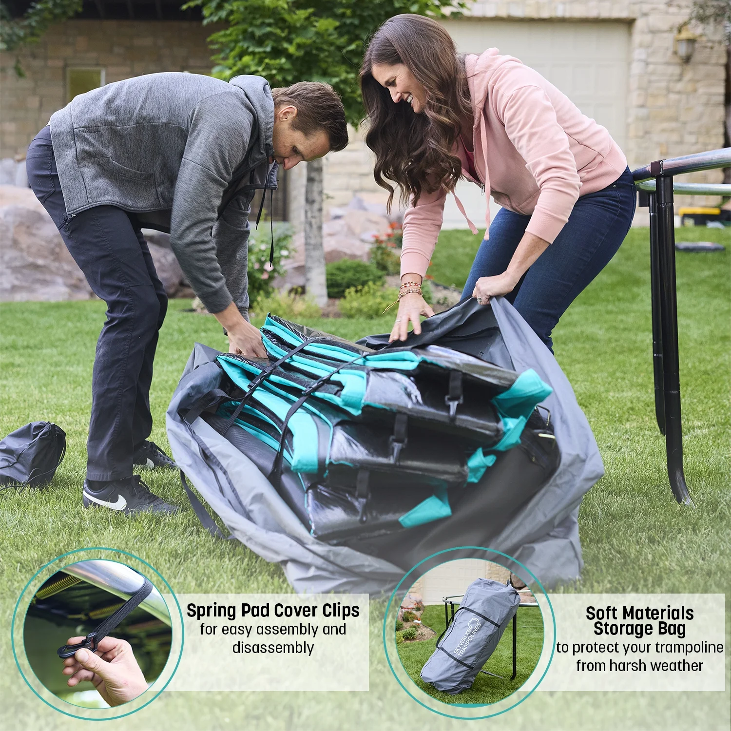 Convenient Storage Solution: Comes with a specially designed storage bag to keep trampoline components organized and protected during offseason months, simplifying winter storage and facilitating quick setup.