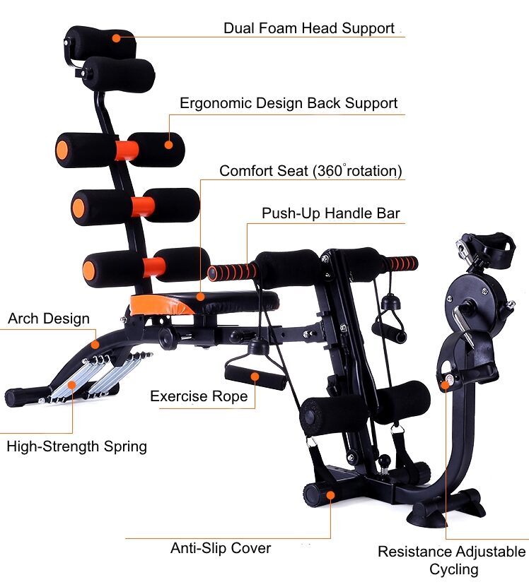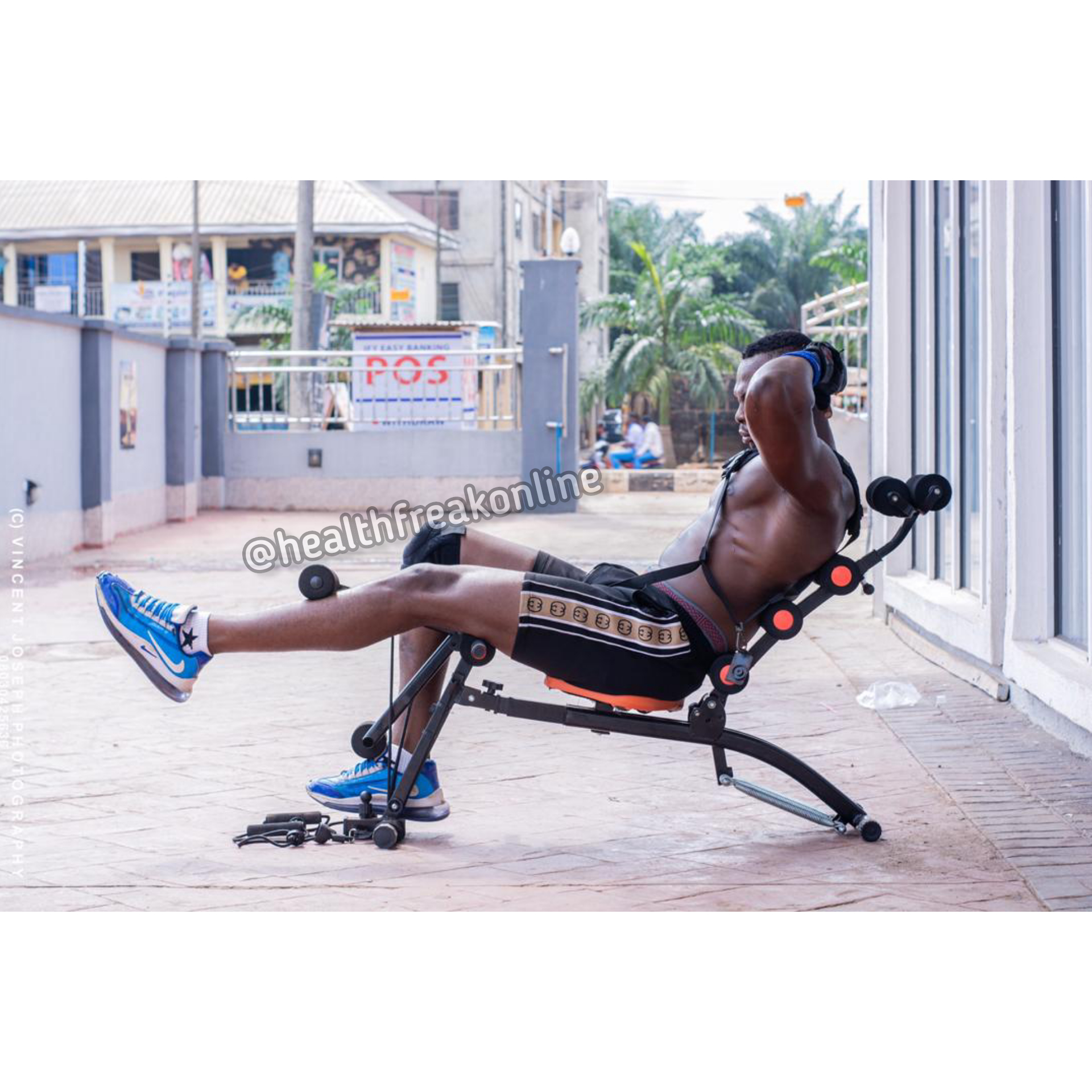 will tone your abs and help lose weight. Perfect for every fitness level. The 22-in-1 Fitness Breakthrough will keep you comfortable during your workout! Adjustable Multilevel resistance, for different levels of fitness. Targets upper abs, middle abs, lower abs and leaning. The 22-in-1 Fitness Breakthrough offers proper neck and back support, keeping you in perfect form. Fully adjustable sturdy frame, thick padding for superior support and a rolling wheel action. Easy to assemble & store for quick storage.